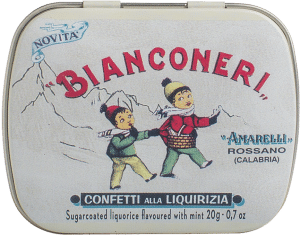 Ingredientes Regaliz, azucar, almidón de trigo, sabores naturales de menta y vanilla.