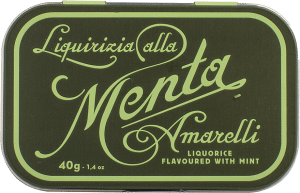 Favette, piccoli rettangoli di liquirizia dura aromatizzata al fresco sentore di menta naturale.